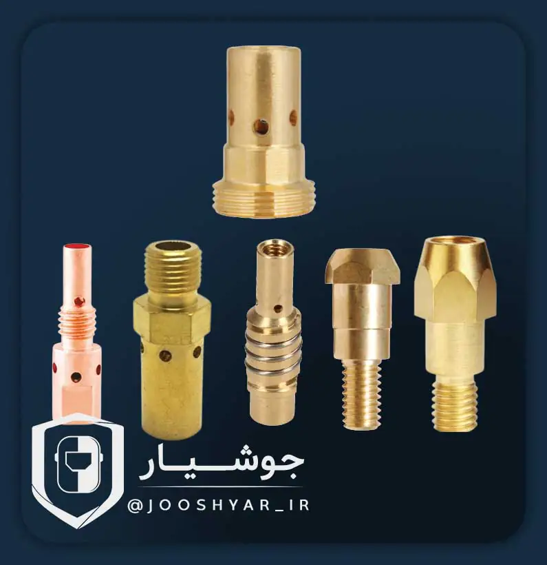 پایه نازل معمولاً از آلیاژهای مسی یا برنجی مقاوم در برابر حرارت بالا ساخته میشود تا بتواند در برابر جریان شدید برق، حرارت حاصل از قوس جوش، و تماس مداوم با سیم جوش مقاومت داشته باشد. این قطعه، علاوه بر تأمین مسیر الکتریکی مطمئن، باید توانایی مکانیزم قفل شونده و پیچ شونده برای نگه داشتن نازل را نیز داشته باشد.