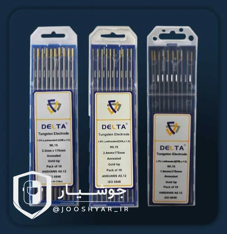 تنگستن طلایی دلتا در سایزهای کاربردی 1.6، 2.4 و 3.2 میلیمتر عرضه میشود که نیاز طیف گستردهای از جوشکاریها را پاسخ میدهد؛ از کارهای دقیق و سبک تا جوشکاری با آمپراژ متوسط روی انواع فلزات.